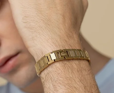 El brazalete de eslabón Lacoste para hombre, de la colección METROPOLE, es una pieza de joyería urbana, refinada y con carácter, pensada para quienes buscan un estilo distintivo sin renunciar a la elegancia. Inspirado en el icónico patrón petit piqué de Lacoste, este brazalete refleja el equilibrio perfecto entre modernidad y tradición francesa.