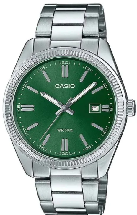El reloj Casio MTP-1302PD-3AVEF es una pieza que combina la clásica precisión japonesa con un diseño elegante y atemporal. Con un diámetro de 39 mm, esfera analógica en verde intenso y correa de metal en tono plata, este reloj es ideal para hombres que buscan un estilo refinado sin perder funcionalidad.