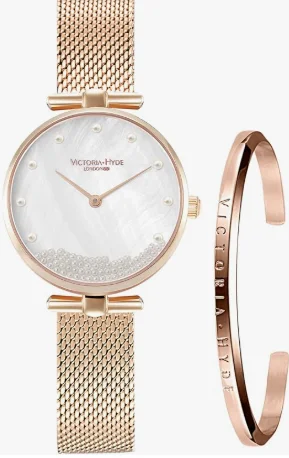 El reloj de pulsera VICTORIA HYDE para mujer es una pieza de joyería moderna y delicada, pensada para realzar cualquier look con un toque de elegancia sutil. Su esfera de nácar iridiscente refleja la luz con suavidad, ofreciendo un acabado sofisticado y atemporal. Combinado con un diseño analógico clásico y el movimiento de cuarzo de alta precisión, este reloj es tanto un accesorio de moda como un símbolo de buen gusto.