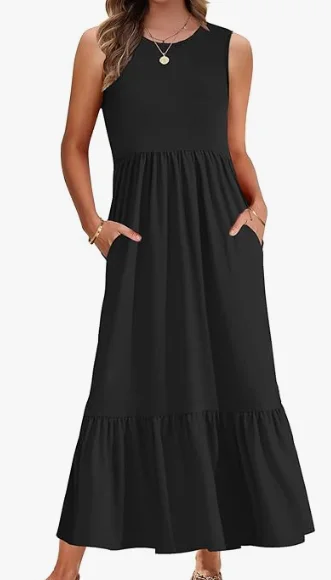 El vestido largo de verano para mujer AUSELILY es la prenda perfecta para disfrutar de los días soleados con comodidad, estilo y frescura. Su diseño sin mangas y con cuello redondo ofrece un look casual y elegante, ideal tanto para salidas informales como para relajarte en la playa, vacaciones o paseos urbanos.