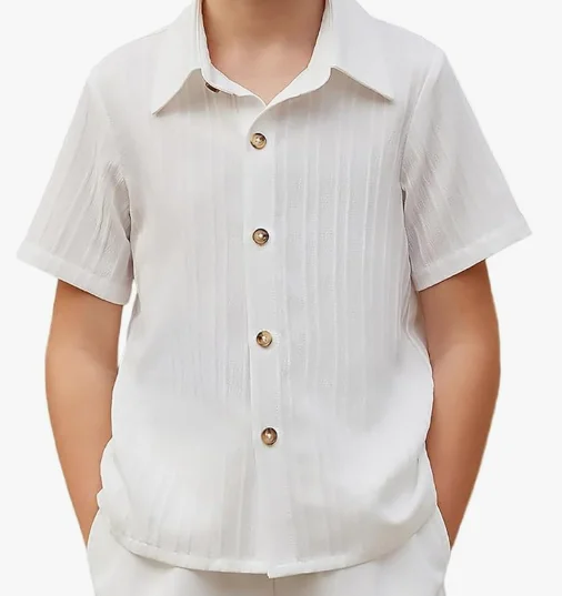La camisa casual de verano para niños es la prenda ideal para aportar un toque de estilo y frescura a los looks infantiles durante los días más cálidos. Diseñada con manga corta y botones frontales, esta camisa combina un diseño moderno y festivo con una textura ligera que la hace perfecta para cualquier ocasión, desde un paseo en familia hasta eventos más formales.